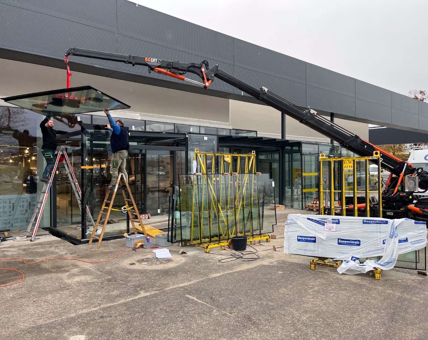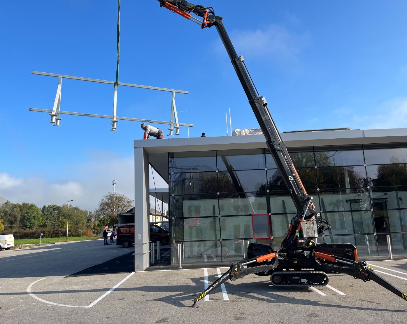 Mit unserem leistungsstarken Raupenkran sind wir in der Lage, sämtliche Hebearbeiten präzise und zuverlässig durchzuführen. Dank seiner Wendigkeit und Flexibilität können wir auch schwer zugängliche Montageorte mühelos erreichen, selbst durch Türen mit einer Breite von nur 85 cm. Darüber hinaus ergänzen ein Teleskopstapler und eine Scherenhebebühne unseren Fuhrpark, um eine vielseitige und effiziente Unterstützung für Ihre Projekte zu gewährleisten.