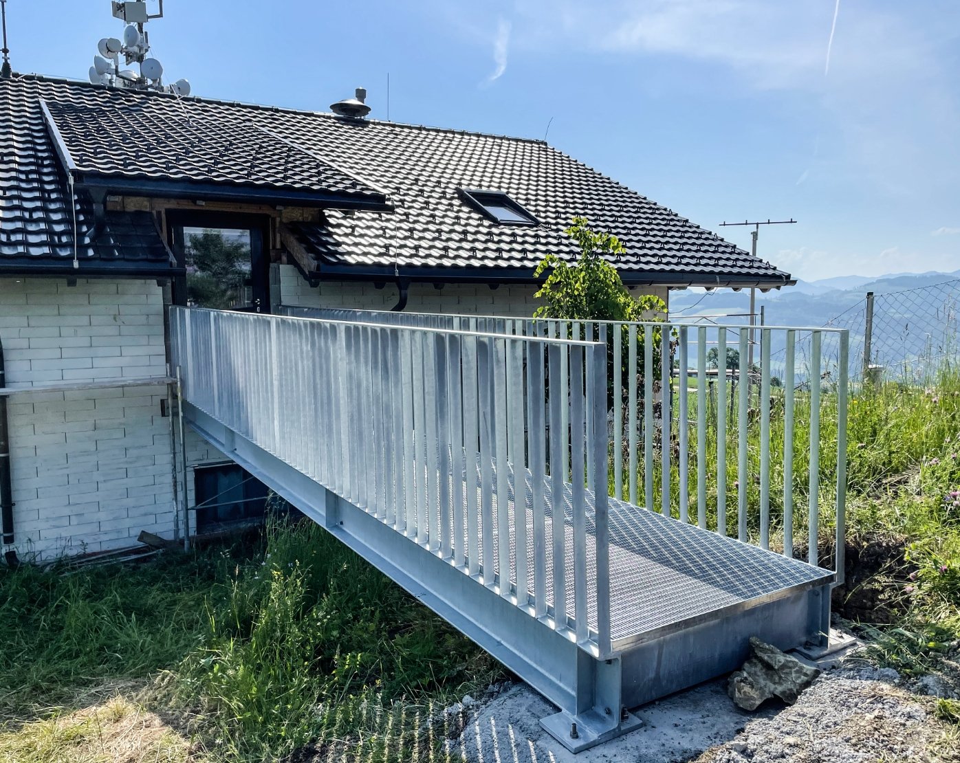 Unser Angebot an Geländern ist vielfältig und individuell anpassbar. Ob Nurglasgeländer, Geländer mit Glasfüllung, vertikalen Stäben oder Blechfüllung – wir fertigen nach Ihren Wünschen. Die Oberflächen sind robust feuerverzinkt und/oder beschichtet, wobei die Farbgestaltung ganz nach Ihrem Geschmack erfolgt.