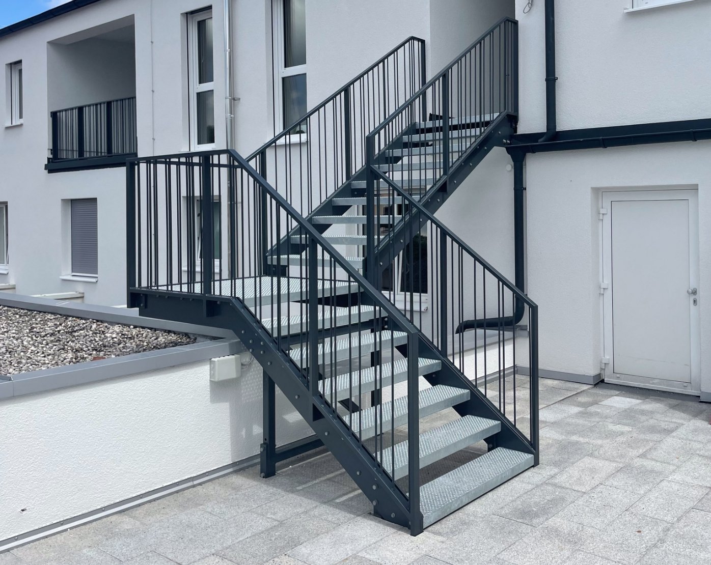 Unsere Treppen für den Innen- als auch für den Außenbereich bieten eine Vielzahl von Optionen, darunter Holz-, Gitterrost-, Blech- oder Steinstufen. Die Geländer können aus Metall oder Glas gefertigt werden, außerdem bieten wir eine breite Palette von Farben an.