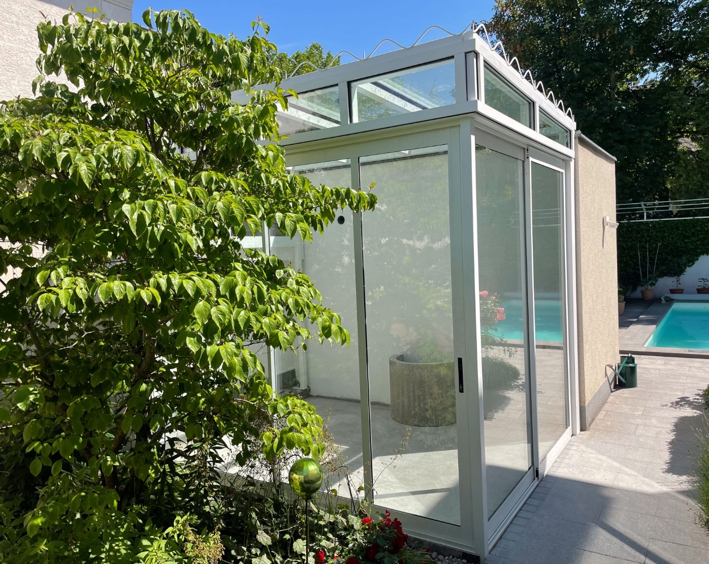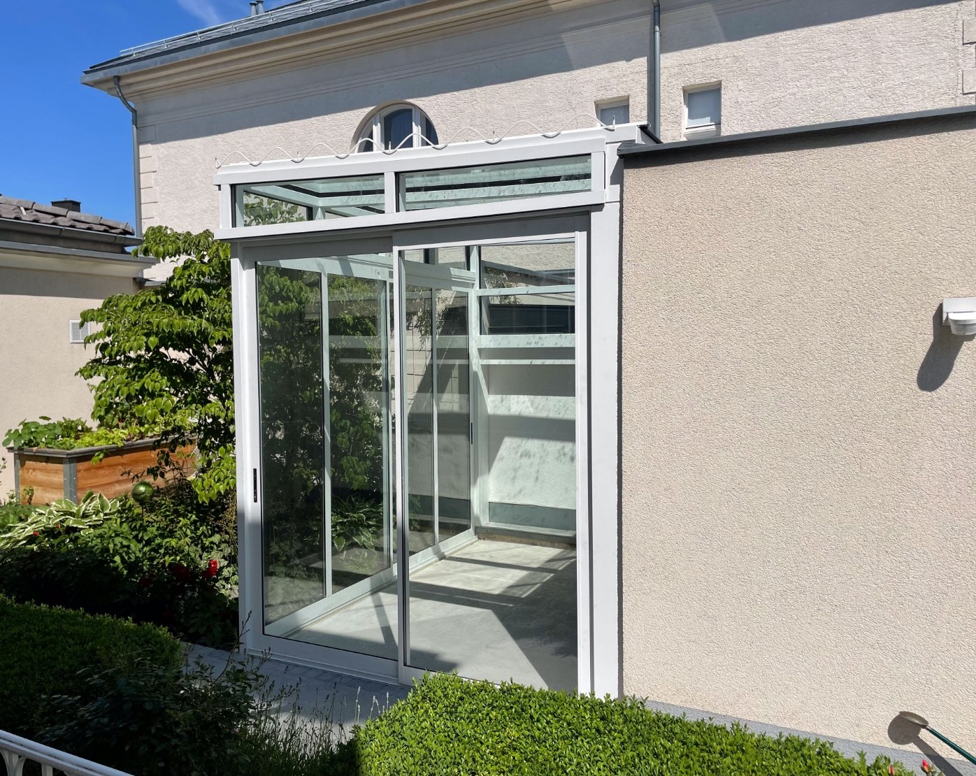 Unsere Wintergärten bieten vielseitige Gestaltungsmöglichkeiten: Die Fronten und das Dach können mit öffenbaren Elementen ausgestattet werden, sei es mit Dreh- oder Schiebetüren. Zudem können Dachfenster integriert werden. Die Oberflächen sind feuerverzinkt und/oder pulverbeschichtet und können in der von Ihnen gewünschten Farbe ausgeführt werden.